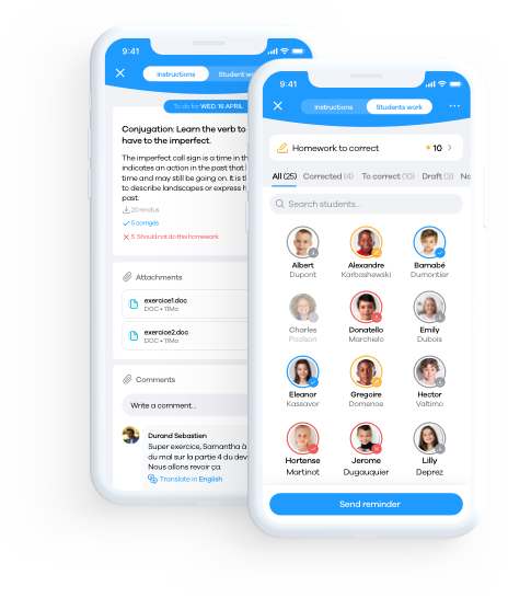 I genitori hanno una chiara visibilità sul lavoro da fare e possono consegnarlo con un solo clic. Gli insegnanti ricevono quindi i compiti completati nello stesso posto e possono iniziare a valutarli.